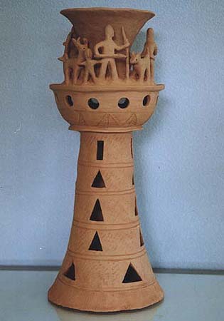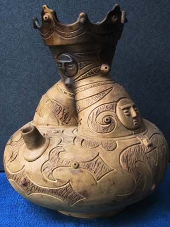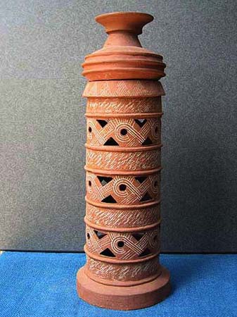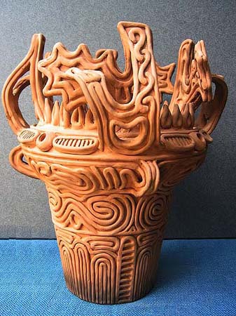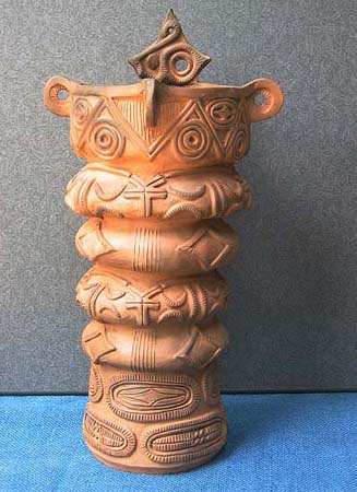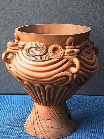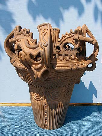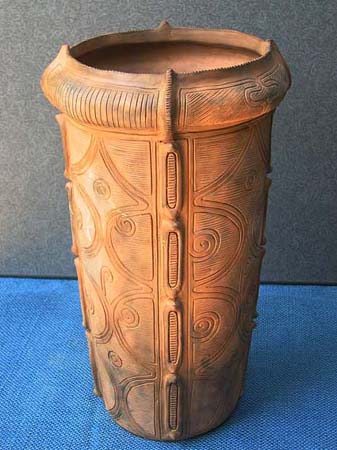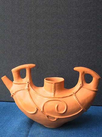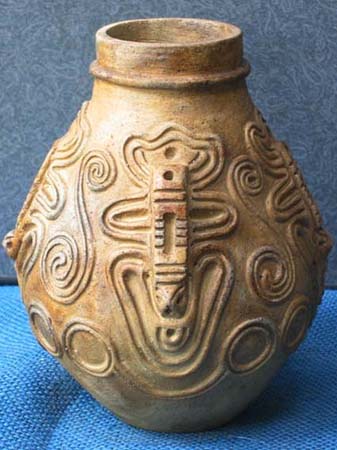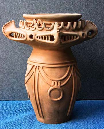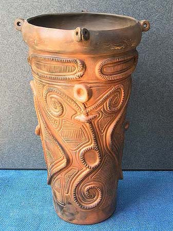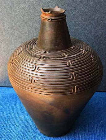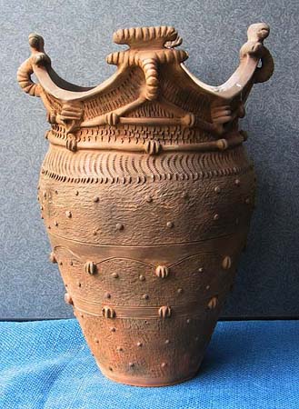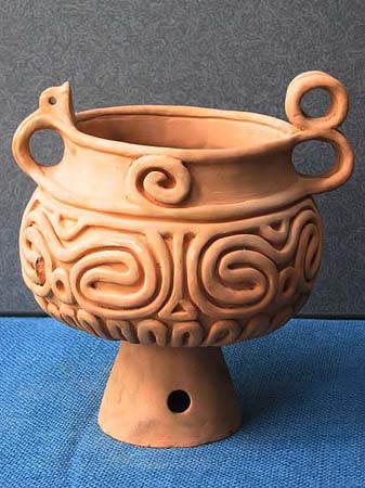 石や木とちがって、粘土は人々の手によってさまざまに姿を変えます。人々が自由に形づくることができる素材が粘土です。この粘土から作られる土器は、その自由さによって,それぞれの時代の人々の考えかたや感じかたがとてもよく表わされています。そして、時代が変わり、人々の考え方や感じかたが変わると土器の形や模様も変わってゆきます。考古学者はこの土器の変わりかたによって歴史の移り変わりのくぎりを見つけます。土器は歴史のものさしになるのです。