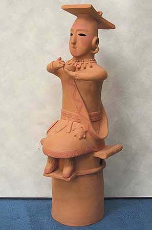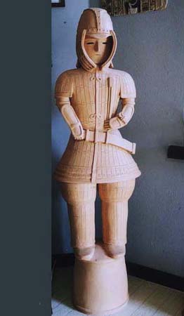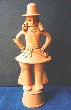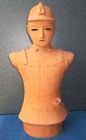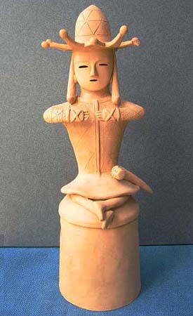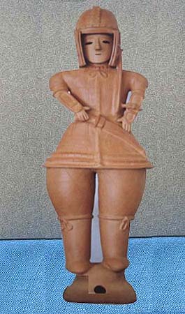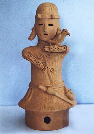 はにわにはいろいろの種類がある。最も数が多いのが円筒、それに各種の器材、家、人物、動物などである。ここでは、形の変化に富んだ、人物をとりあげてみよう。人物の表現の仕方には、全身像と、上半身だけをあらわした半身像とがある。全身像は製作も入念で、優れたものがみられるが、半身像は小型で、省暗された子法によるものが相当認められる。しかし、全体の数のうえでは、半身像のほうがはるかに多い。また男と衣とをくらべると、女子供には全身を表現したものは、きわめてまれであるということも注意をひく。ほとんどのものが直立する形につくられ、腰かけたり、あぐらをかいたり、ひざまずいたりする姿勢のものは、非常に少ない。全体の動きは、持ち物と、短い手のわずかな変化によって表現されている。はにわの手足は、体躯の大きさにくらべて、いちじるしく小さいことが特徴で、それが逆に稚拙な、あどけない独特な雰囲気をかもし出す結果にもなっている。顔の表情は、すこぶる変化に富み、無表情な顔、笑った顔、おどけた顔、悲しげな顔、ものいいたげな顔など、いろいろな顔を見いだすことができる。これはそれぞれの役割をあらわしているのであろうが、一般に畿内の人物は無表情で、関束地方のものは変化に富んだ表情のものが多い。